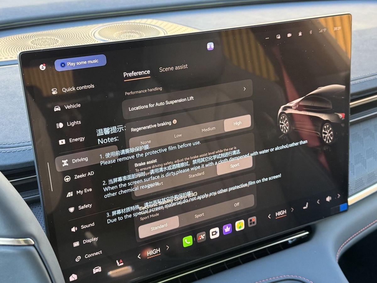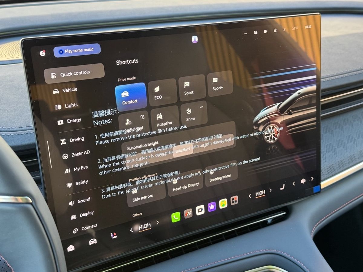 · Продвинутый автопилот: Включает систему помощи водителю Zeekr G-Pilot H7 с лидаром и чипом Nvidia Thor-U (700 TOPS).